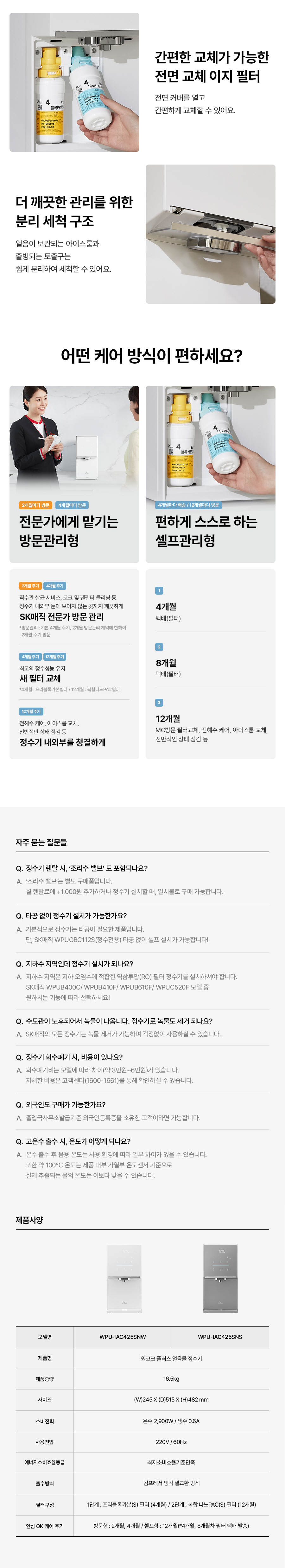 SK매직 25년형 원코크 플러스 얼음물 정수기 (4개월방문)